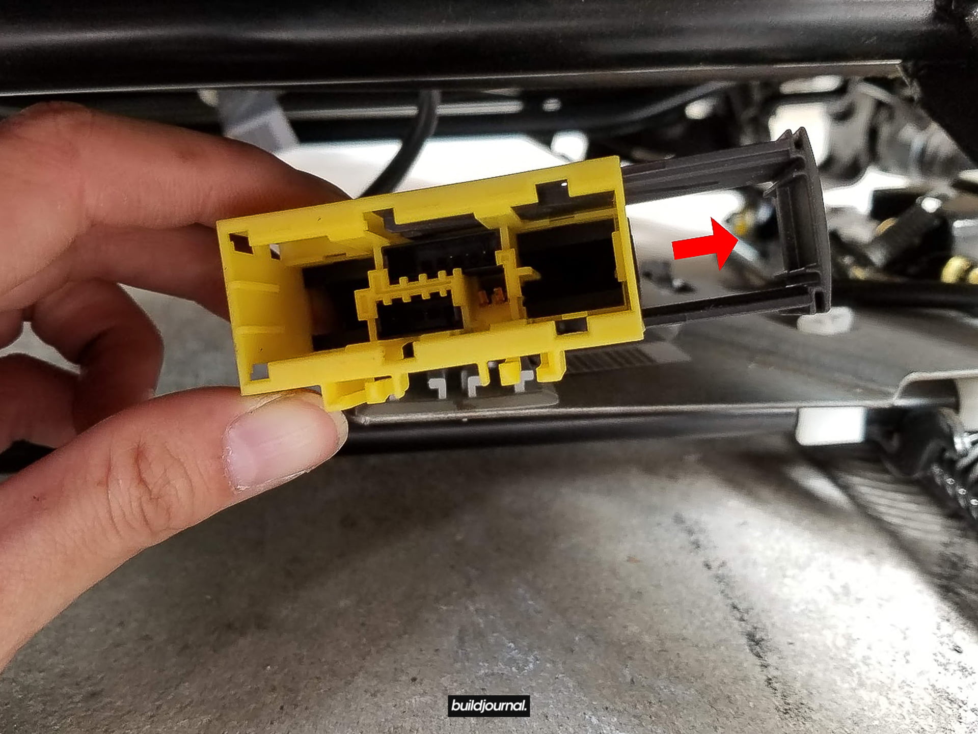 1.3 – Disconnect the power supply from your seat. There is a lever-like clip on the side of the connector, flip it up. Then push the side of the plug outwards and it will release the plug and you can pull out.